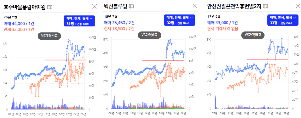 별로라고 생각했던 단지들이었음에도, 수도권이 주는 힘이 상당하구나..