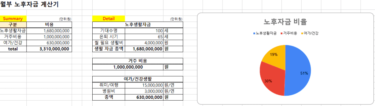 필요한 노후 자금 합계 ▶ 총 33억 1천 만원