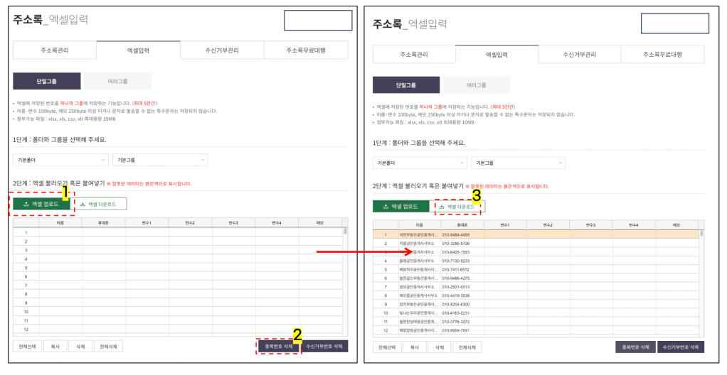 중복 제거 후 엑셀 다운로드 하여 구글 시트로 관리해주시면 더 편할 것 같아요 (선택사항)