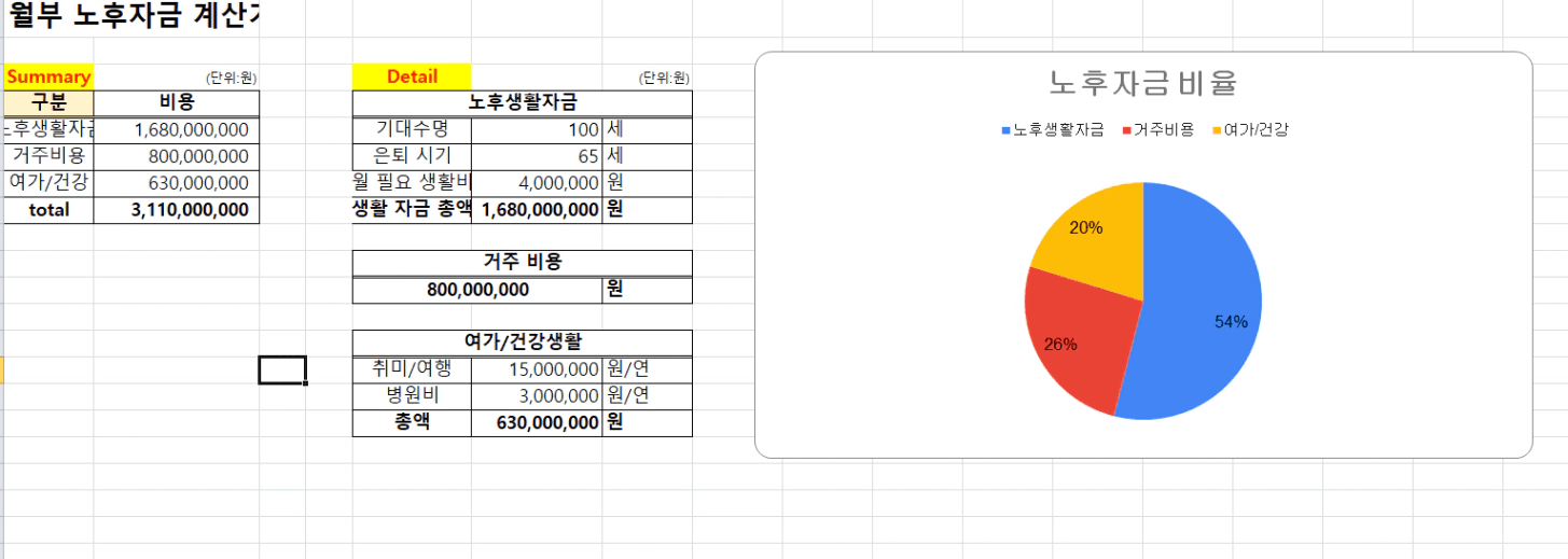 필요한 노후 자금 합계 ▶ 총 31.1억