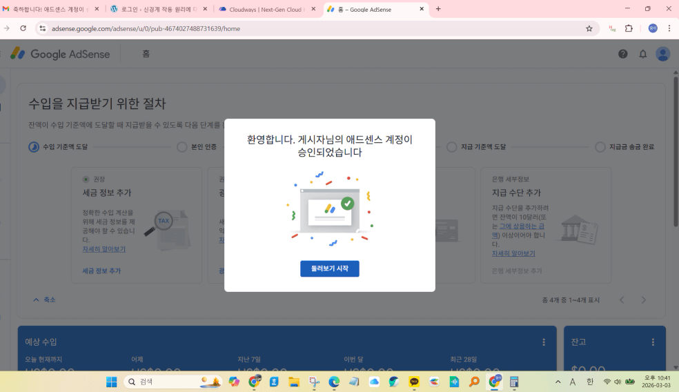 사실 지난 월부월백 애드센스 승인 실패로 포기, 좌절 후 재도전한 상황이었습니다.
