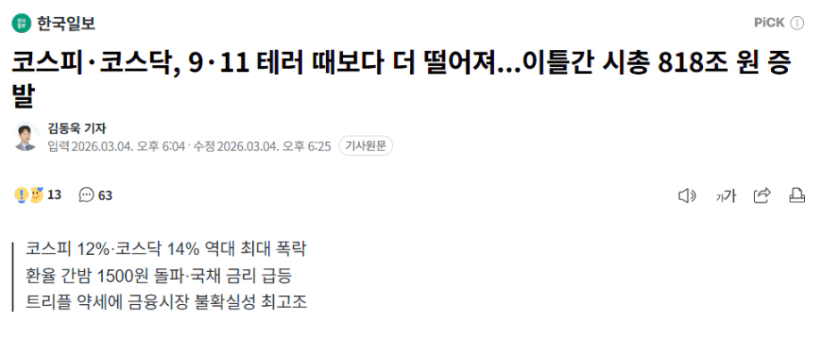최근 미국과 이스라엘의 이란 공습으로 중동 긴장이 급격히 고조되면서 금융시장이 크게 흔들렸습니다.