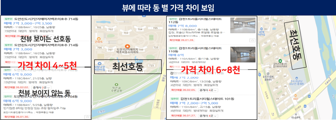 남향 여부, 고층 여부, 조망권 확보 여부에 따라 매매가 격차가 생각보다 크게 벌어지고,