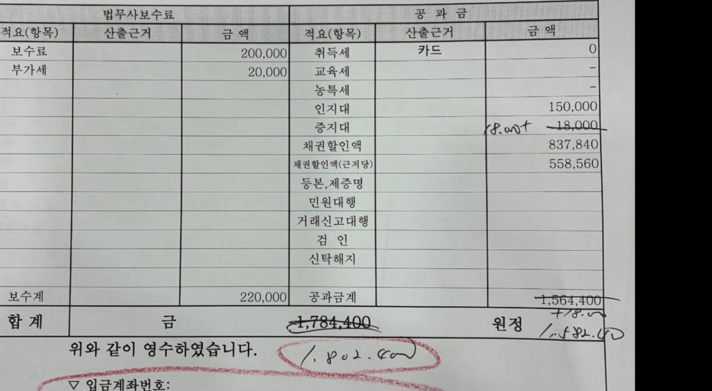 인지,증지,채권,보수료해도 120만원대여야하는데