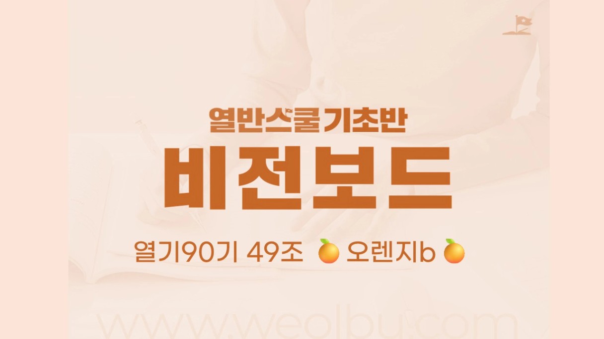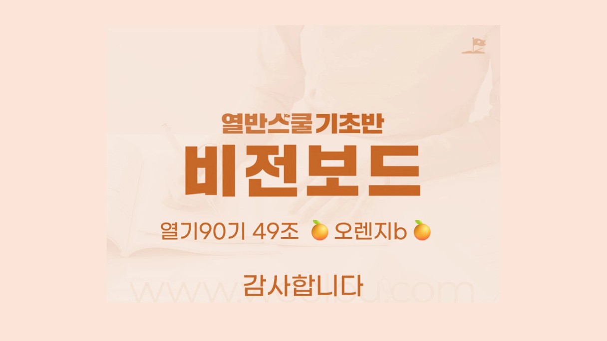 오렌지님 열반기초 듣는군요! ㅋㅋㅋㅋ 비전보드 잘 봤습니다! 고생 많으셨습니다👍👍
