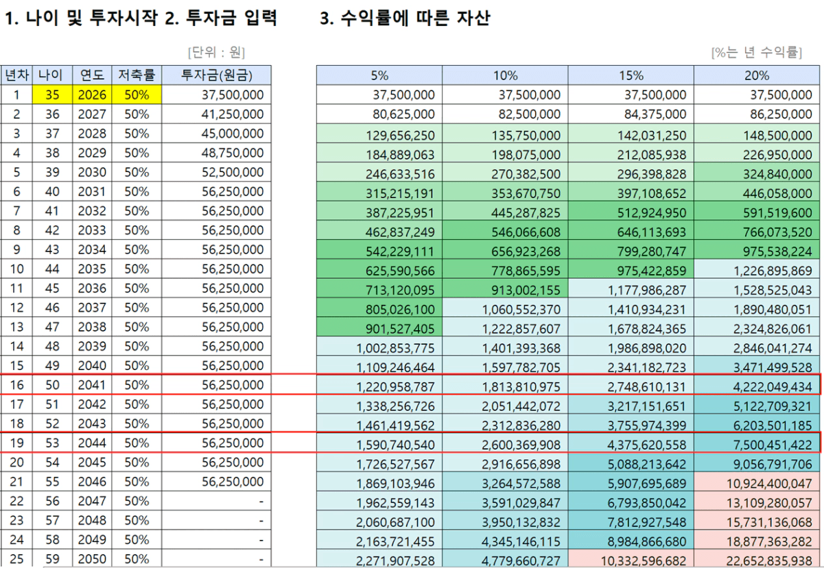 STEP4. 수익률에 따른 은퇴 가능 나이