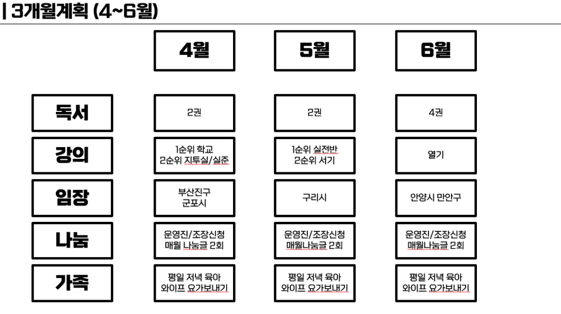 3개월 총 목표 : 6개 / 실적 4개 / 3월 2개 예정