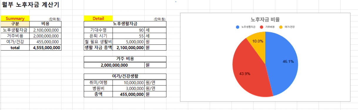 필요한 노후 자금 합계 ▶ 총 45억 5천 만원