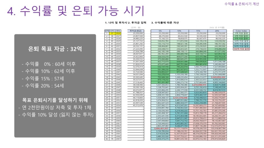 STEP4. 수익률에 따른 은퇴 가능 나이