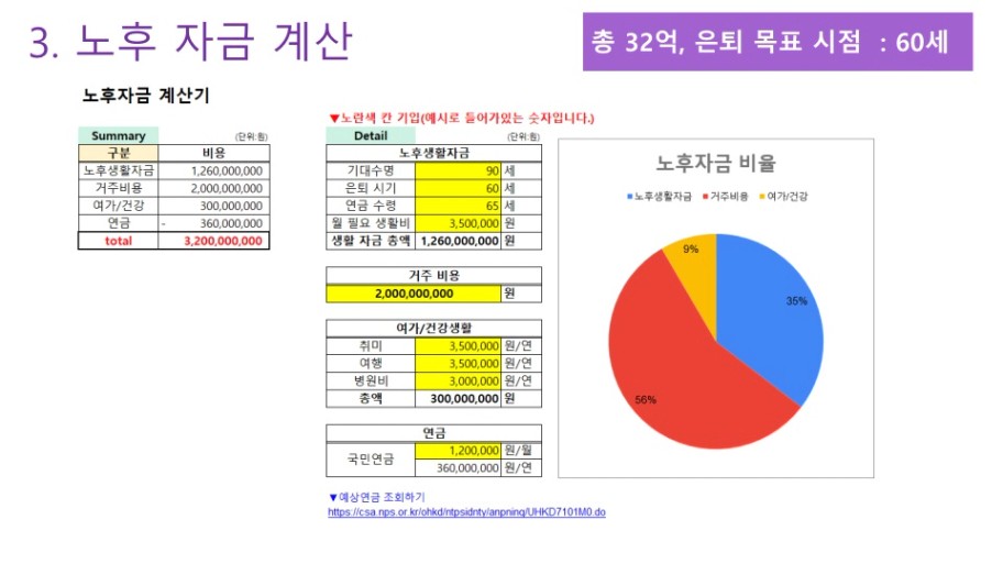 필요한 노후 자금 합계 ▶ 총 32억원