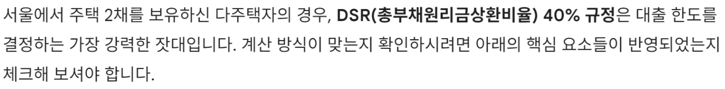 제미나이에게 서울 2주택자 DSR 한도가 몇프로인지 확인하고,