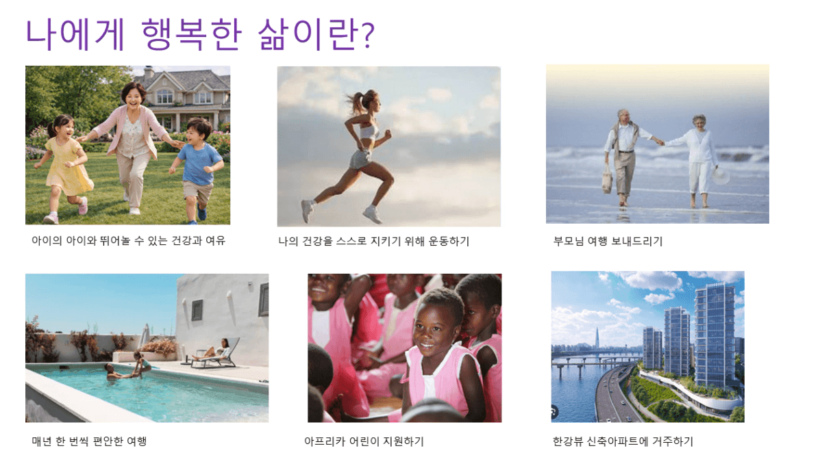 위에서 그려본 꿈꾸는 인생 목표를 구체적으로 적어보세요.