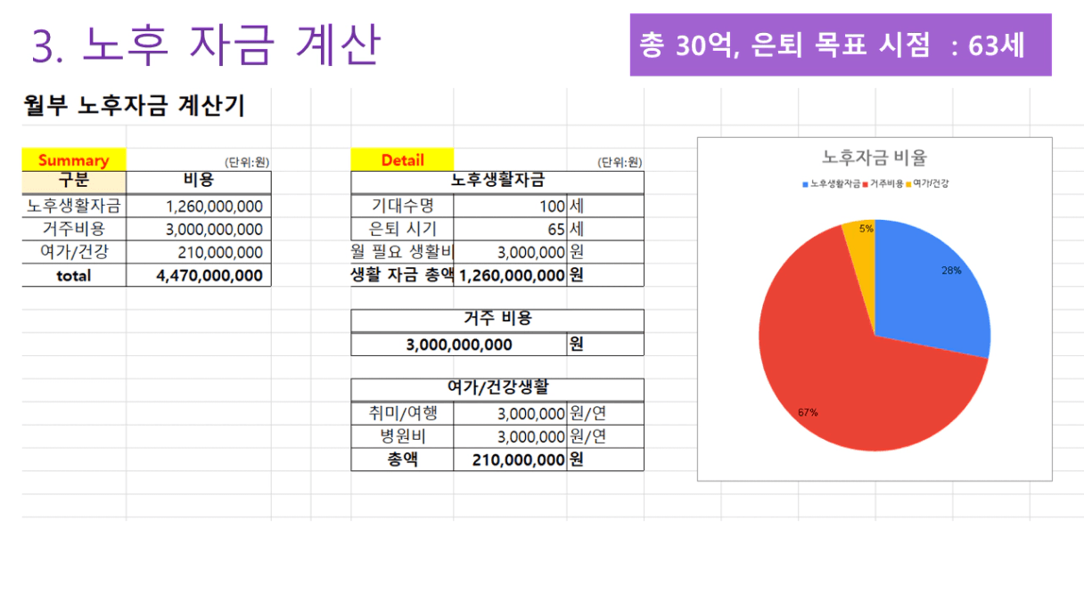 목표 금액 41.6억 (현재 나이 53세)