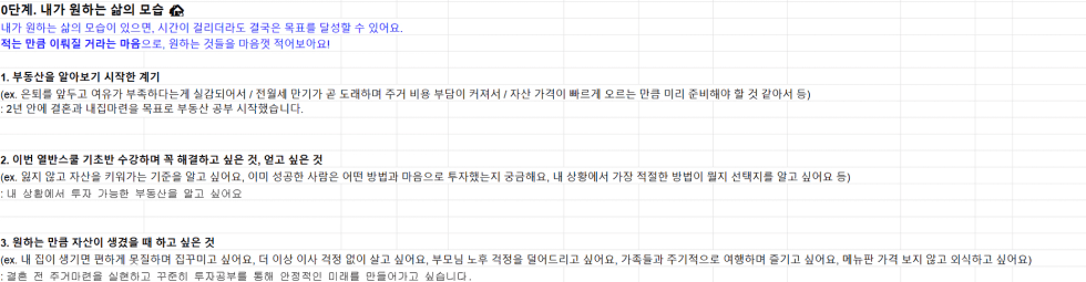 (ex. 은퇴를 앞두고 여유가 부족하다는게 실감되어서 / 전월세 만기가 곧 도래하며 주거 비용 부담이 커져서 / 자산 가격이 빠르게 오르는 만큼 미리 준비해야 할 것 같아서 등)