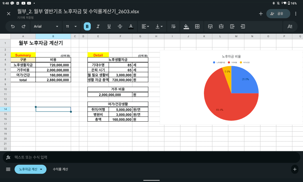 1. 노후 생활 자금: 7.2억