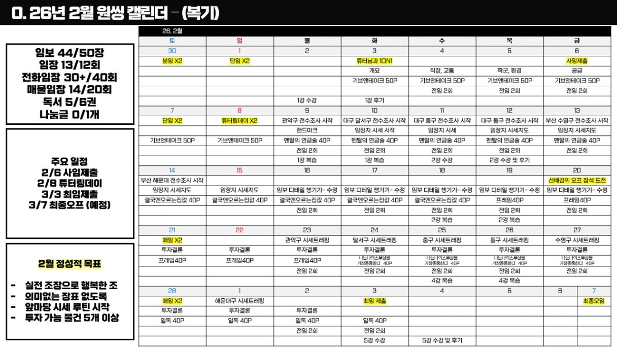 2์ ํ ๋ฌ์ ์์ํ๋ฉฐ 2์์ ๋ชฉํ๋ฅผ ์ธ์ ์ต๋๋ค.