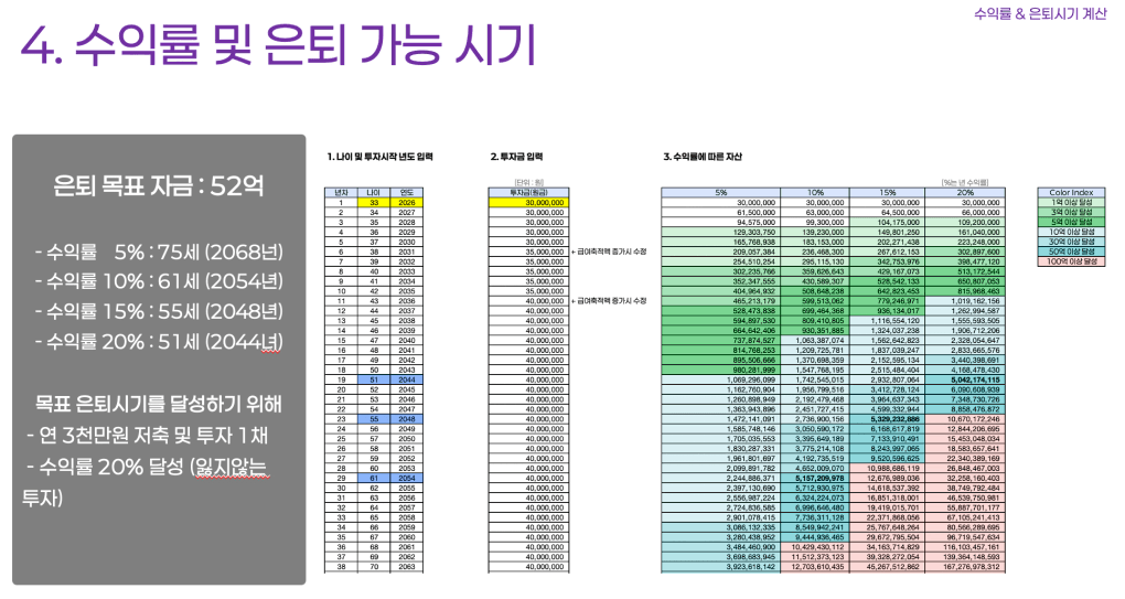 STEP4. 수익률에 따른 은퇴 가능 나이