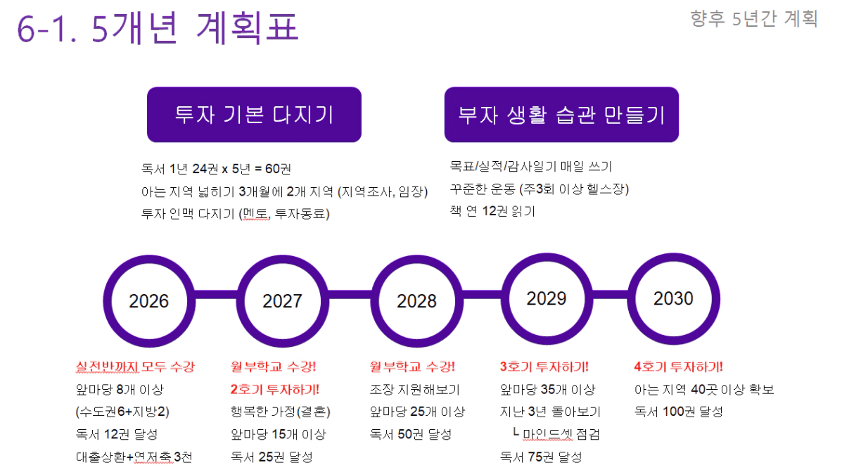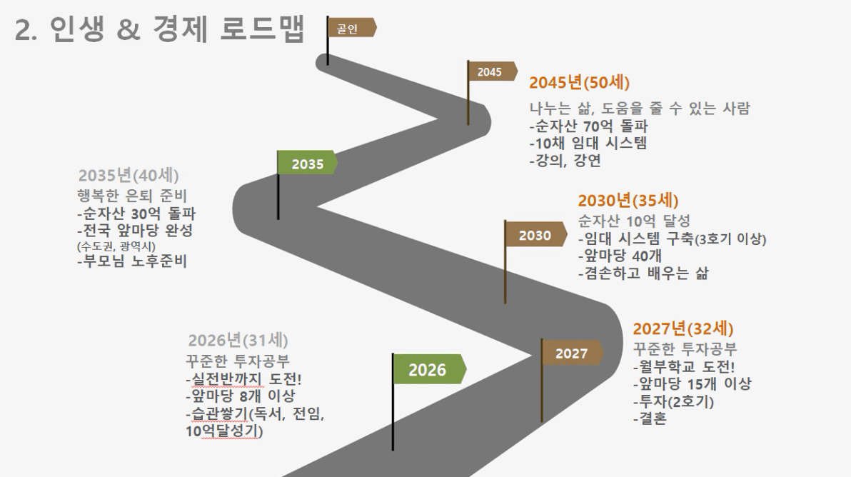 비전보드 실현을 위해 5년 단위로 20년 계획을 세워봅시다. (2025/ 2030/ 2035/ 2040/ 2045년)