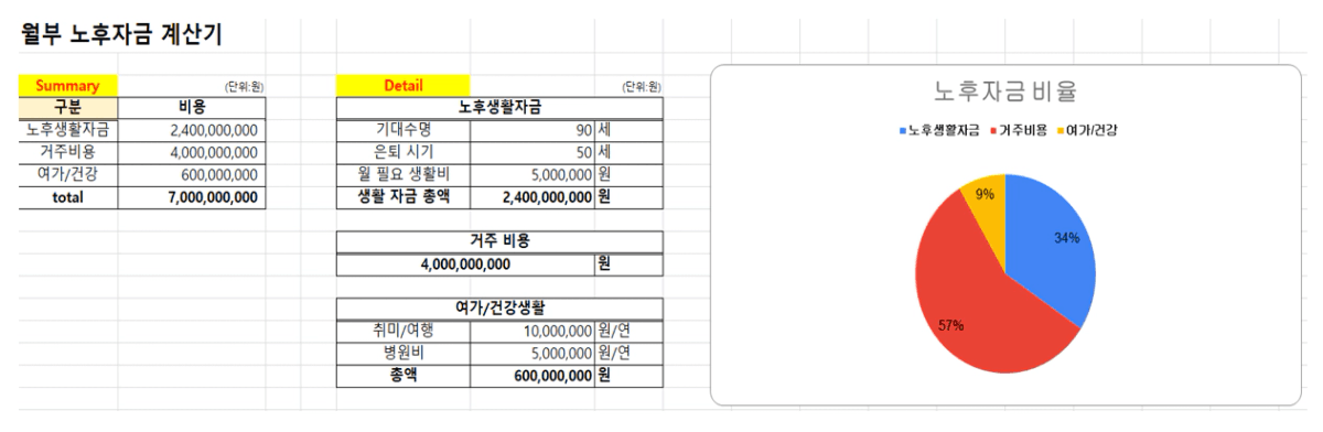 필요한 노후 자금 합계 ▶ 총 7,000,000,000원(70억)