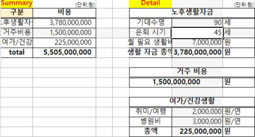필요한 노후 자금 합계 ▶ 총 55억 5백 만원