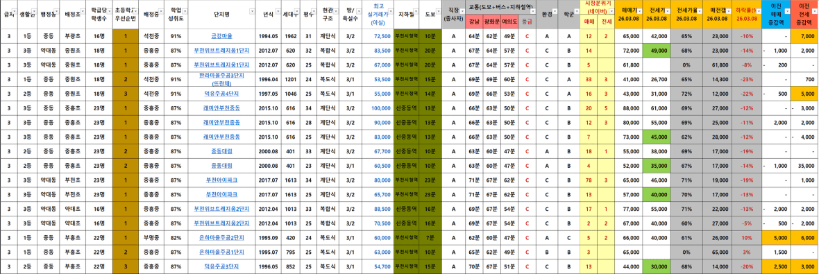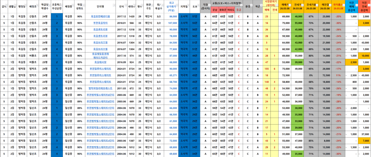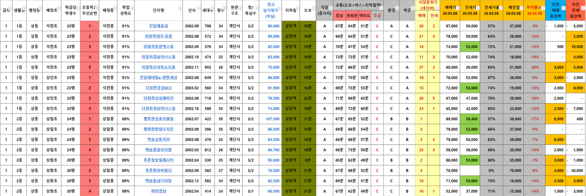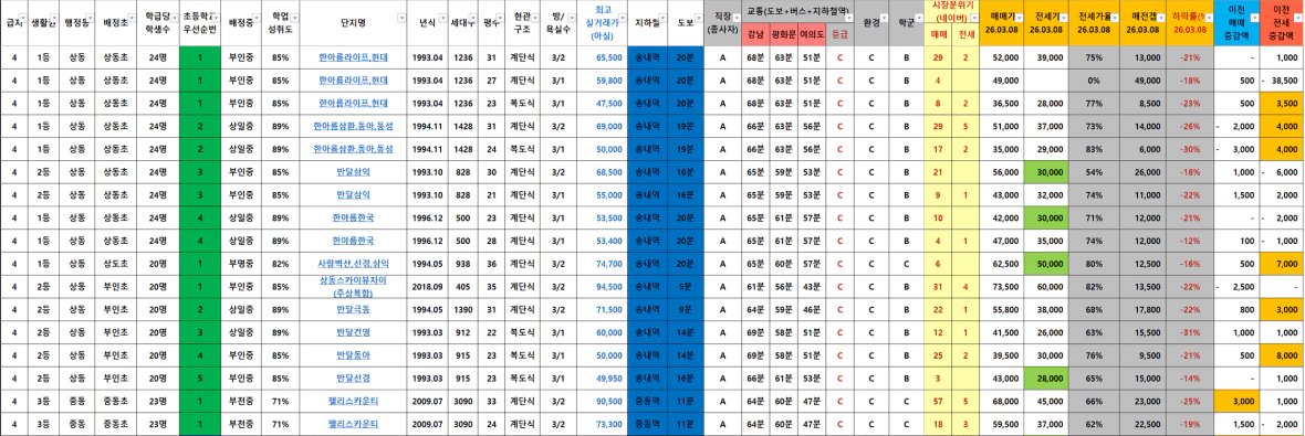 전고대비 저평가(-20%) 기준 단지들이 몇몇 보임