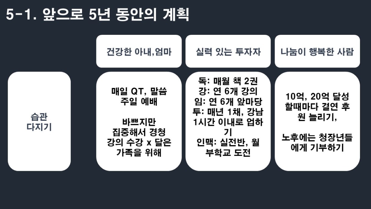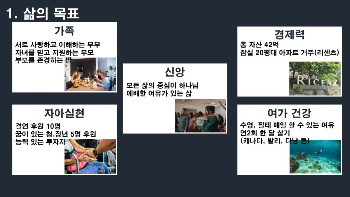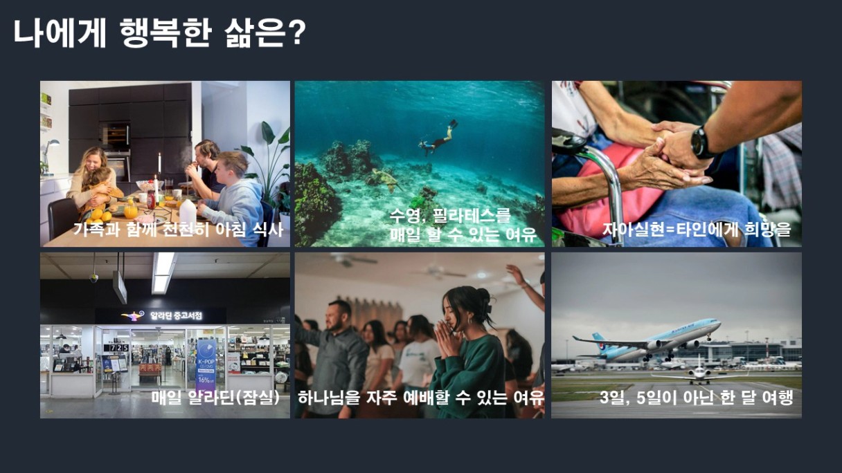 제 자신과 가족, 인생에서 중요하고 원하는게 뭔지 깊이 생각 할 수 있어 좋은 시간이었습니다.