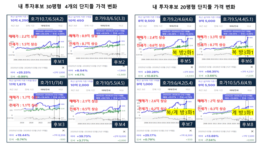 제가 투자할 당시 8개의 후보 단지들은