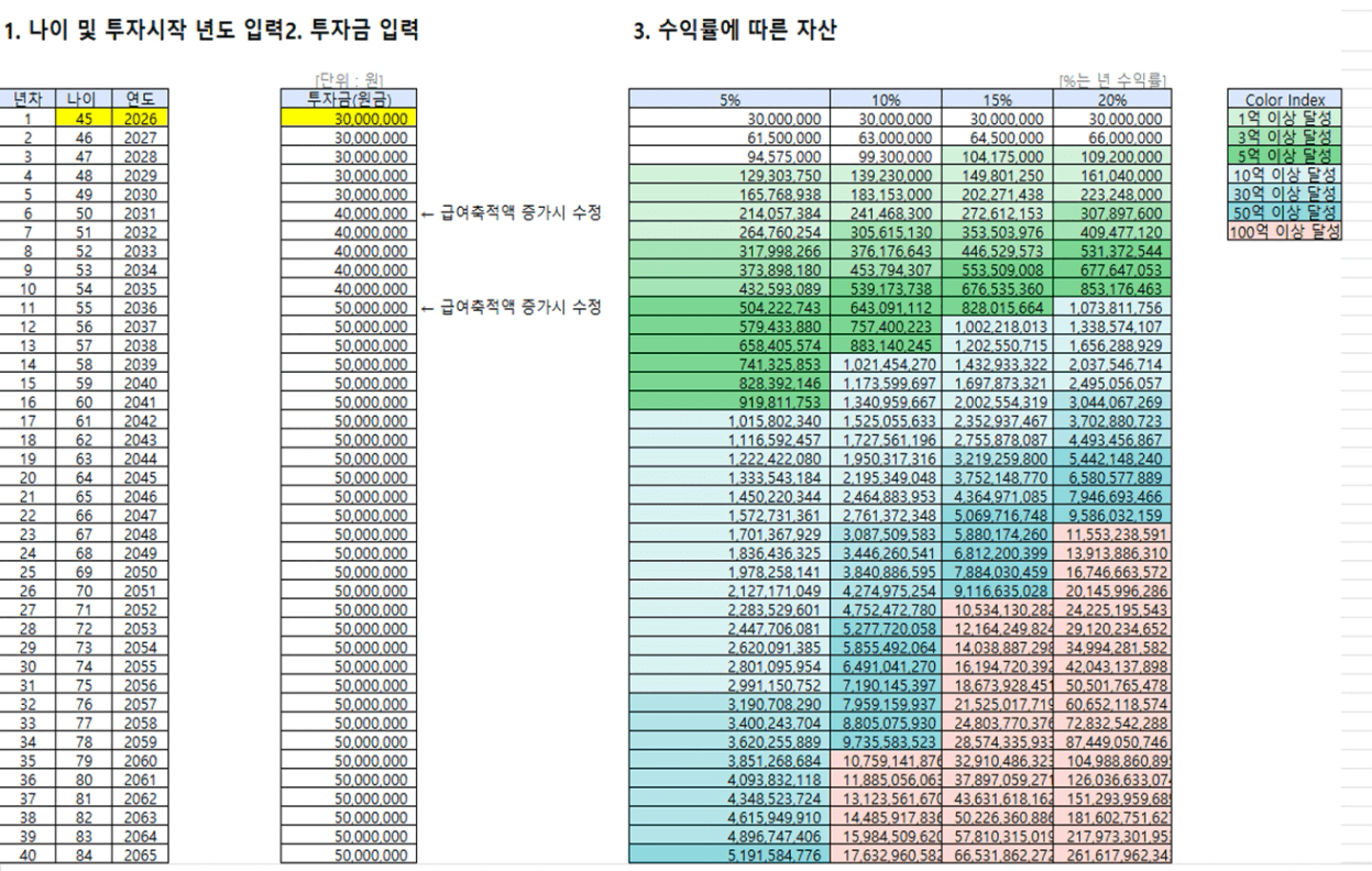 STEP4. 수익률에 따른 은퇴 가능 나이
