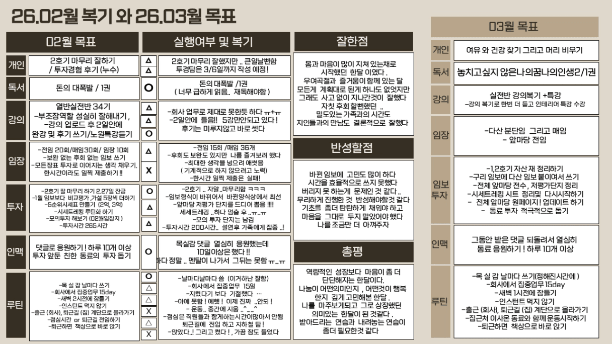 2월 복가와 3월 목표 적어봤습니다.