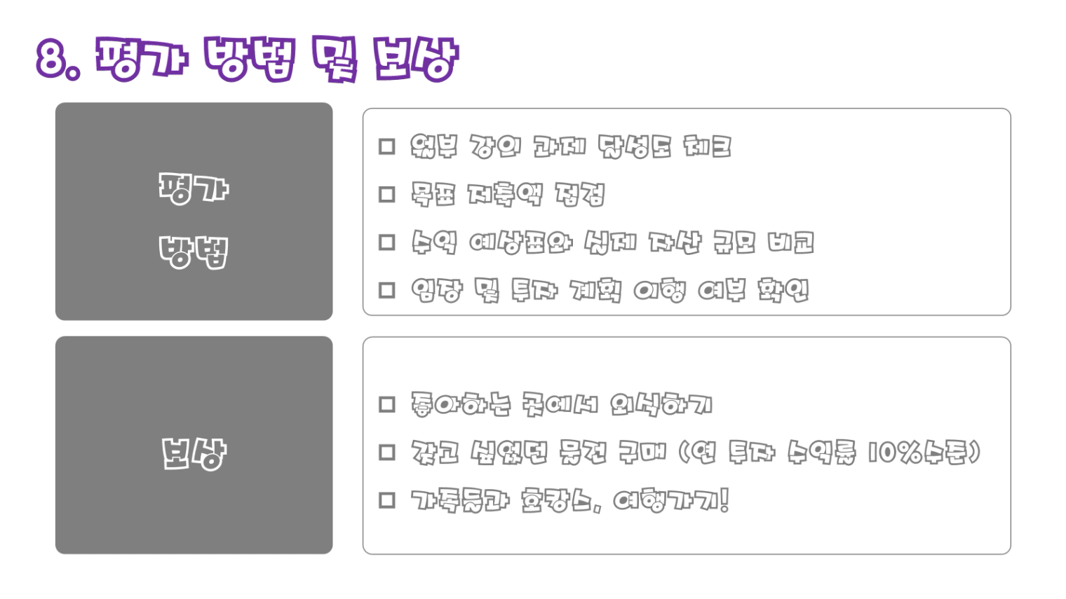 주식님! ㅎㅎ 비전보드 처음 작성 맞으신거죠? ㅎㅎ 시스템 구축 계획까지 해내시고 정말 고생하셨어여! 이번 비전보드의 시작이 될 열기반 한 달! 남은 3주도 같이 화이팅해봐여! 고생하셨습니다!