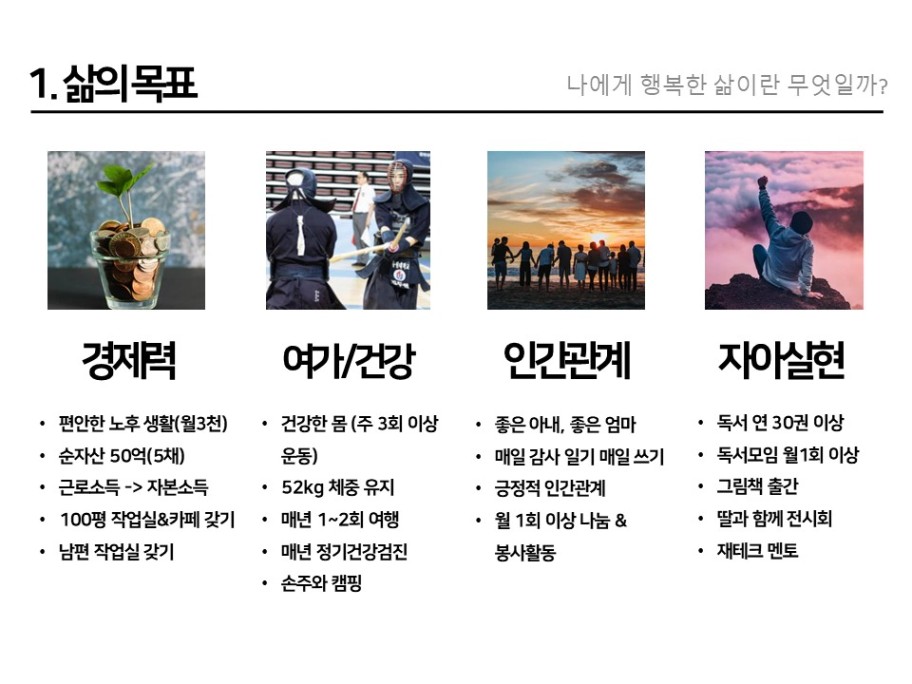 이번 비전보드는 과거와 달리 좀더 세세하게 점검해 보았습니다.