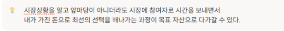 항상 나는 투자하는 사람이라는 마인드를 지니도록 노력해야겠다 생각했습니다.