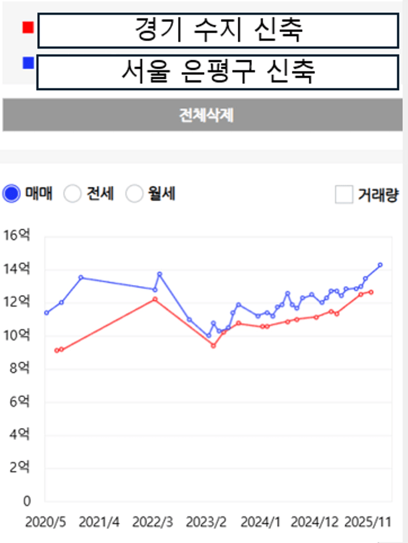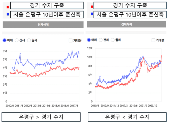 <경기수지구축-서울은평구10년이후준신축 시세비교>