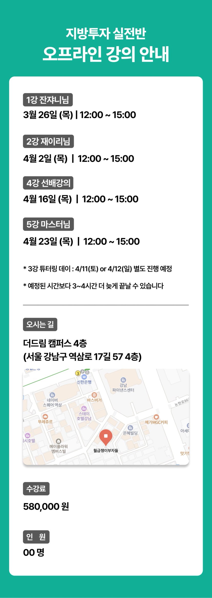 이번 지방투자 실전반에서는 오프라인 수강 초대권을 드립니다!