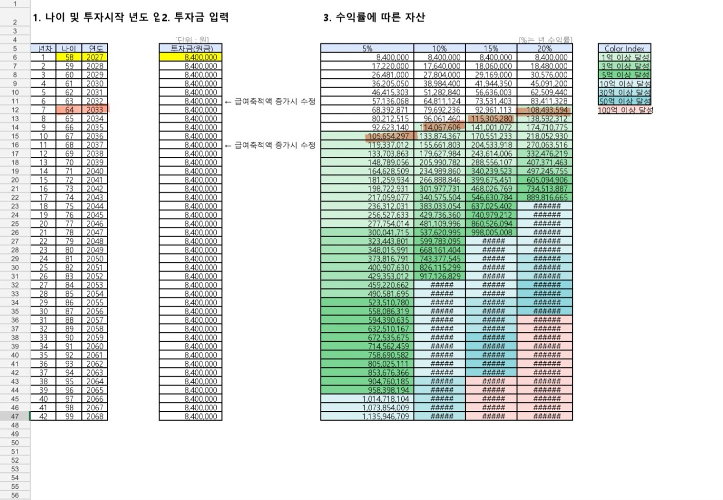 STEP4. 수익률에 따른 은퇴 가능 나이