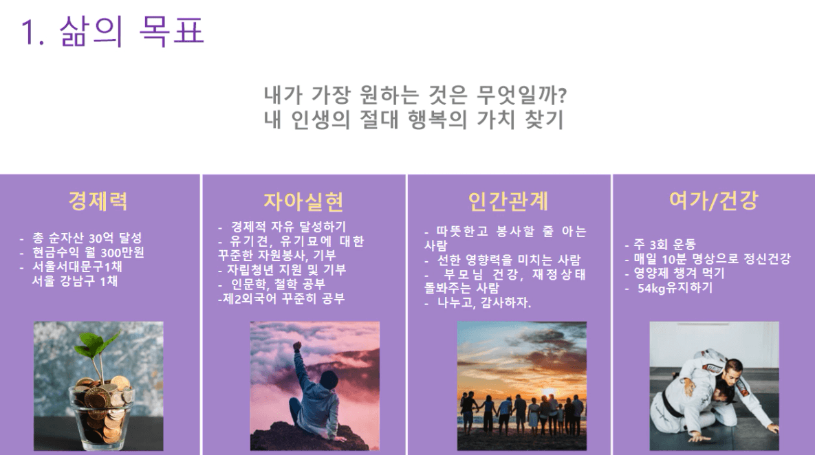 열반스쿨 기초반 1주차 과제 '비전보드' 예시