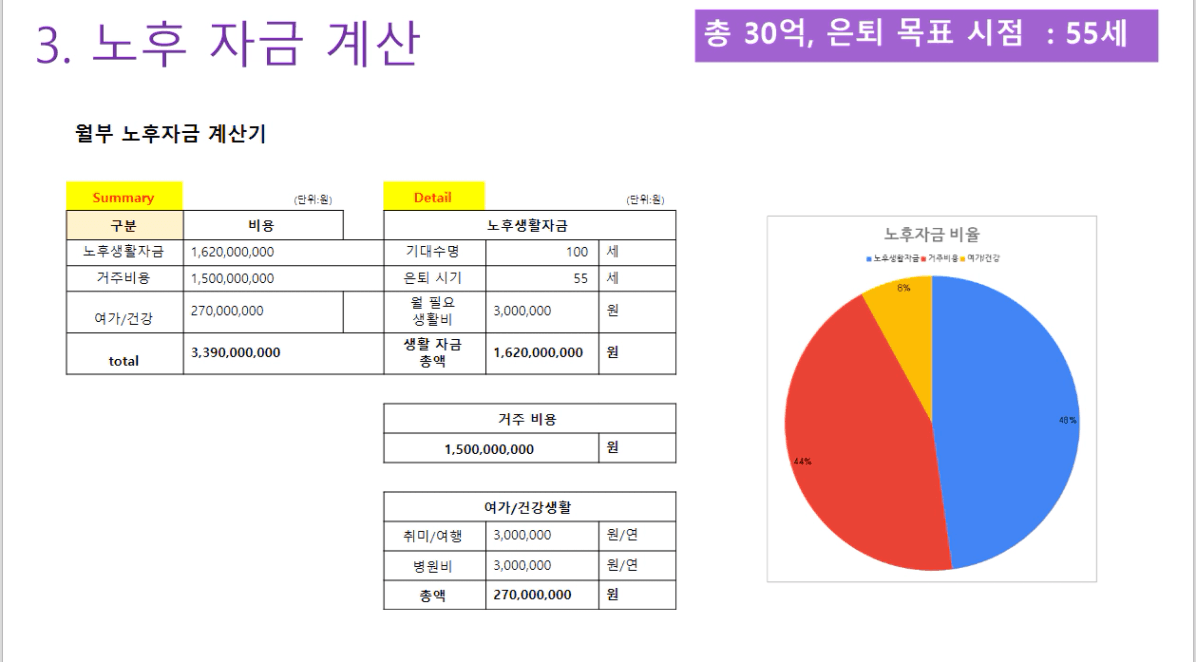 꿈을 실현하기 위해 필요한 노후 자금은 얼마인지 예산을 계산해보세요.