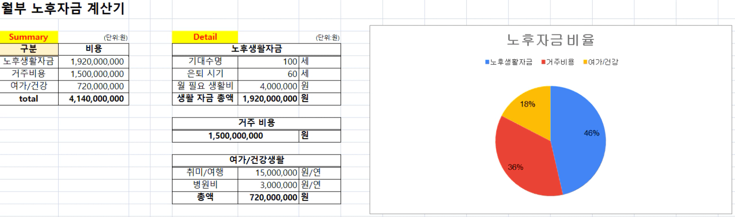 필요한 노후 자금 합계 ▶ 총 41억 4천만원
