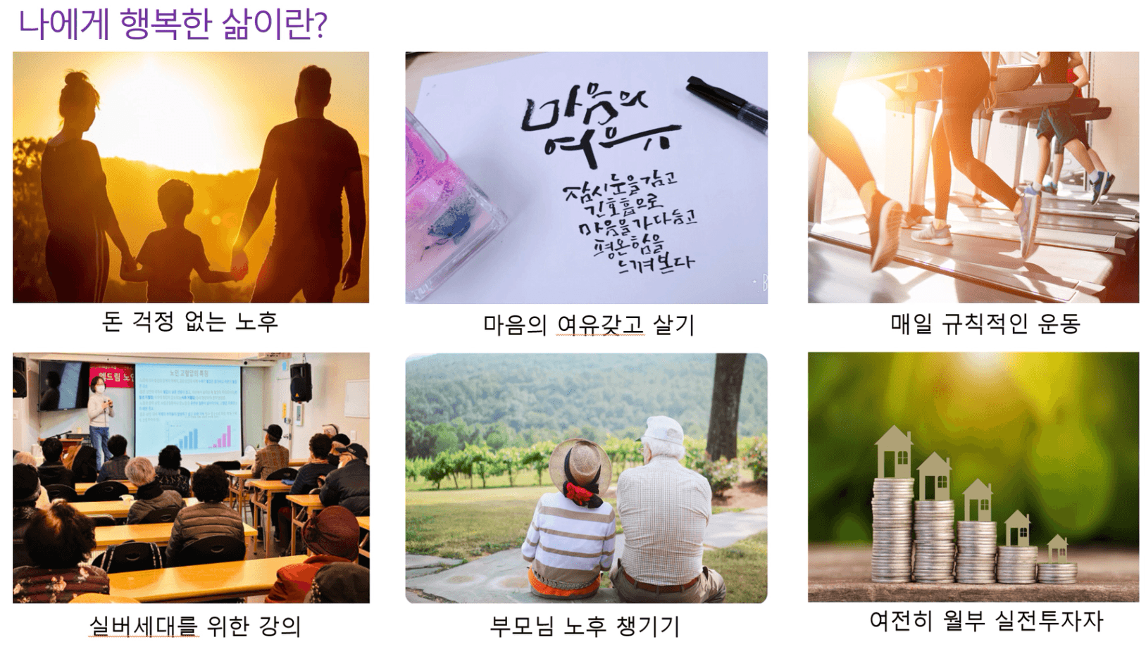 더 행복한 삶을 살아가기 위한 모습들이 담겨있는데요..