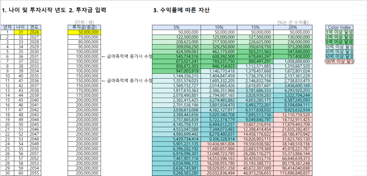 STEP4. 수익률에 따른 은퇴 가능 나이