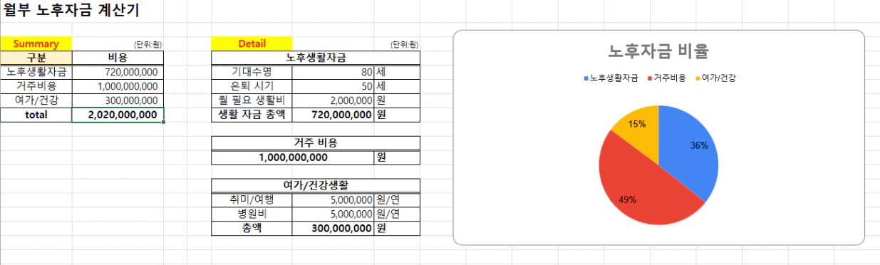 꿈을 실현하기 위해 필요한 노후 자금은 얼마인지 예산을 계산해보세요.