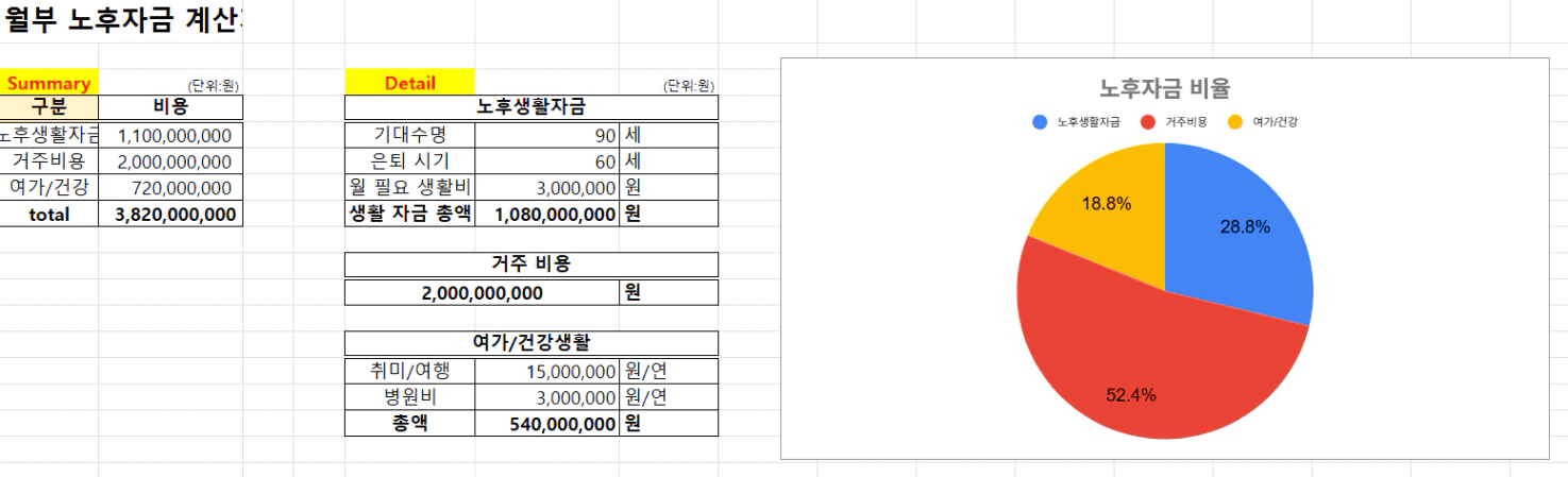 필요한 노후 자금 합계 ▶ 총 38.2억
