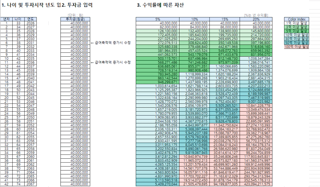 STEP4. 수익률에 따른 은퇴 가능 나이