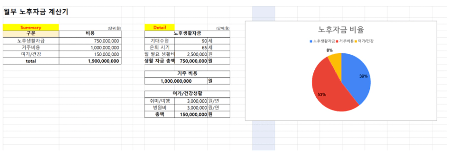 정년 퇴임 목표, 보수적인 저축액 계산으로, 10% 수익률