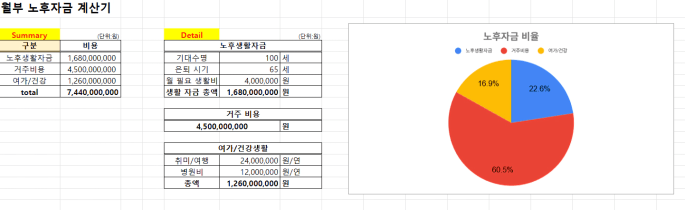 필요한 노후 자금 합계 ▶ 총 74억 4천 만원