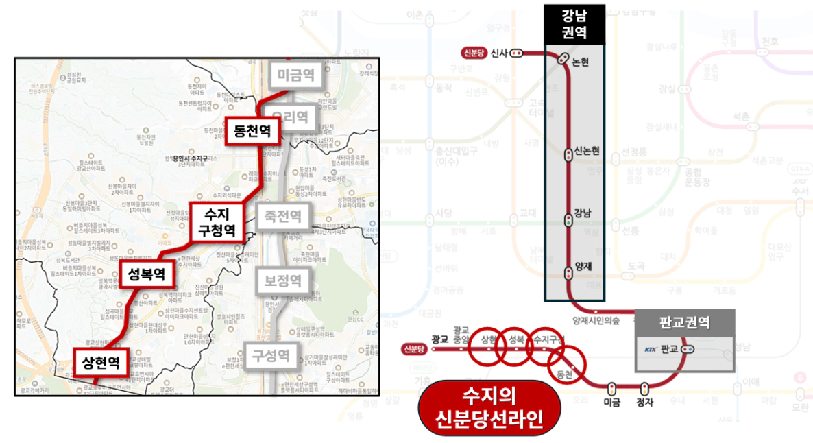 수지는 2016년 신분당선 연장선 개통 이후 강남역까지 20분대, 판교역까지 10분대 접근이 가능해졌고,