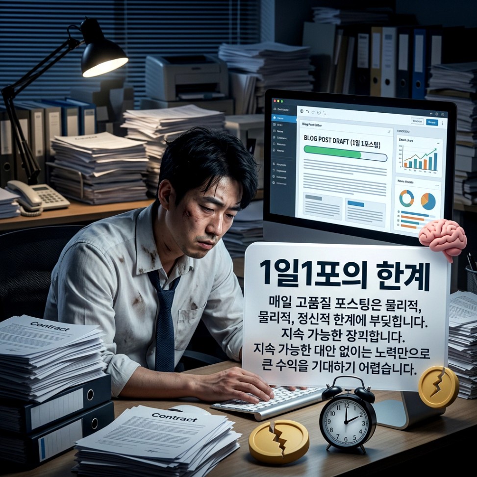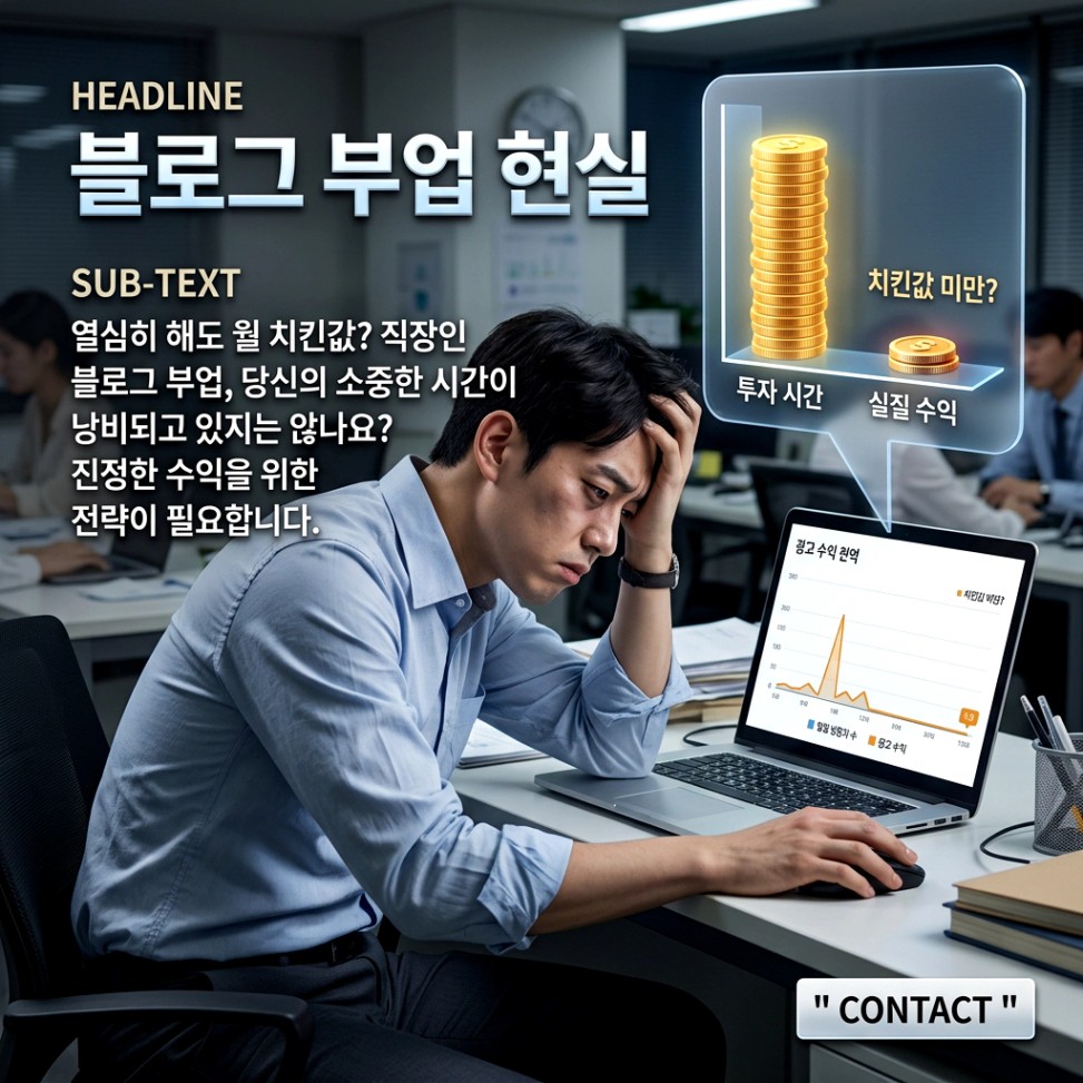 많은 직장인이 월급 외 수익을 꿈꾸며 블로그 세상에 뛰어듭니다. 하지만 현실은 냉정합니다. 한 달 내내 퇴근 후 시간을 바쳐 글을 써도 손에 쥐는 애드포스트 수익은 치킨 한 마리 값조차 되지 않는 경우가 허다하죠.