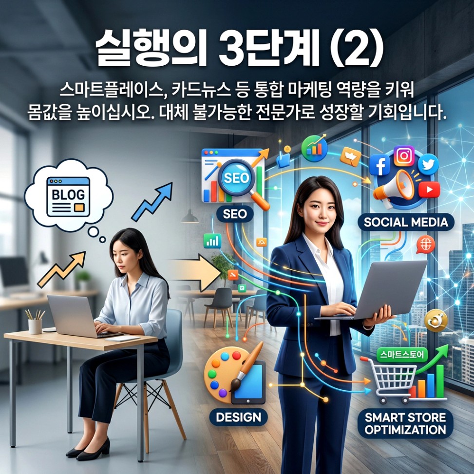 블로그 대행에서 시작해 통합 마케팅 대행으로 가치를 업그레이드하는 순간, 당신의 영향력은 대체 불가능해집니다.