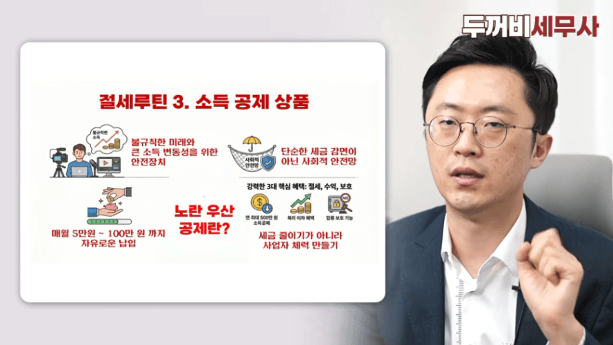제가 꼭 권하는 게 뭐냐면 노란우산 공제 같은 소득공제 상품이에요.