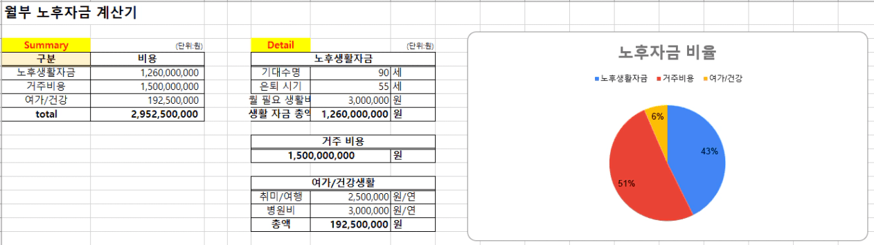 필요한 노후 자금 합계 ▶ 총 29억 5천 만원
